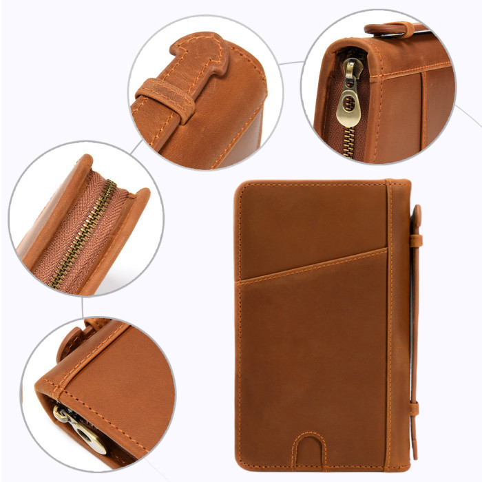 瘋馬皮復古護照夾手拿包長款錢包多功能拉鍊護照包追蹤器卡包真皮