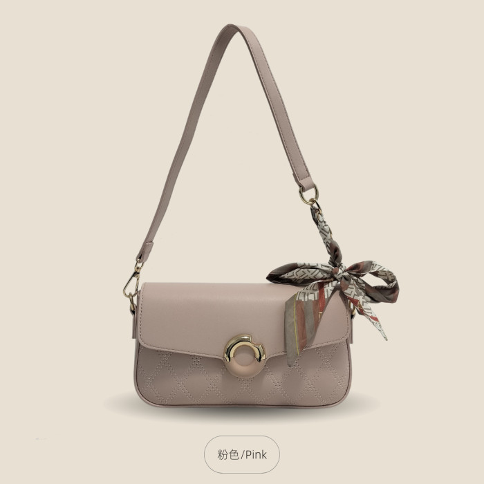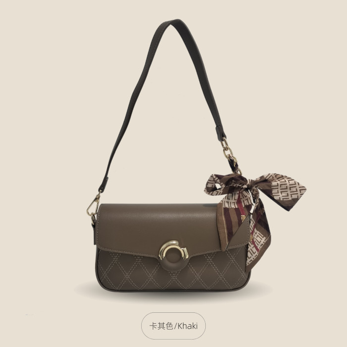 包包女2025新款小衆設計絲巾小方包馬鞍包通勤百搭單肩斜後背包