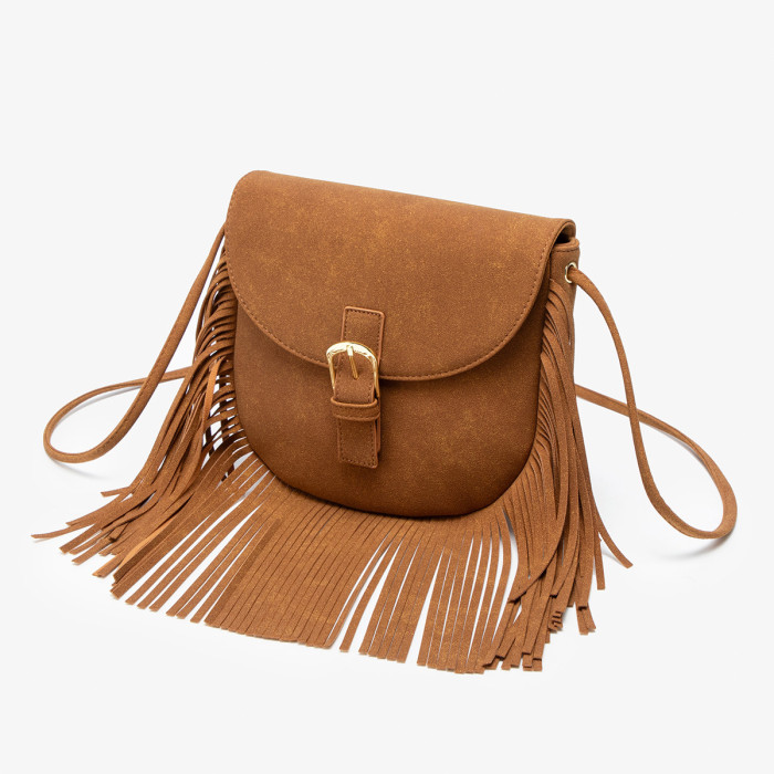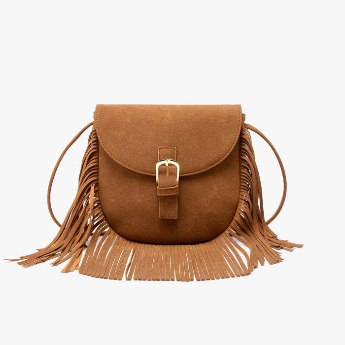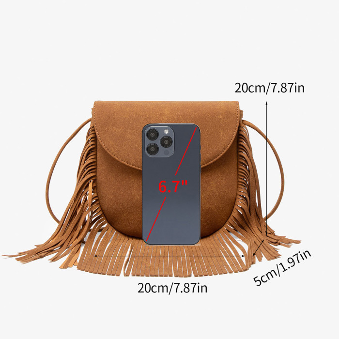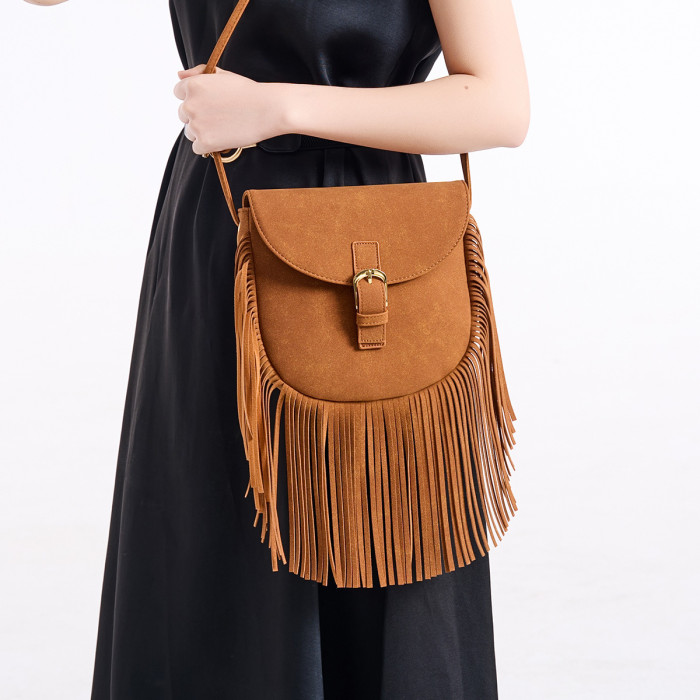 新款復古磨砂流蘇包時尚百搭翻蓋斜後背包潮流大容量女士斜後背包