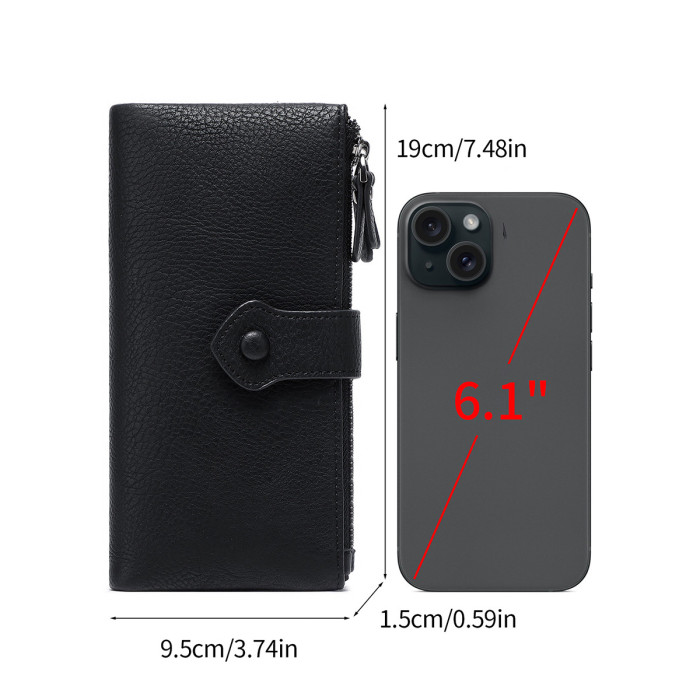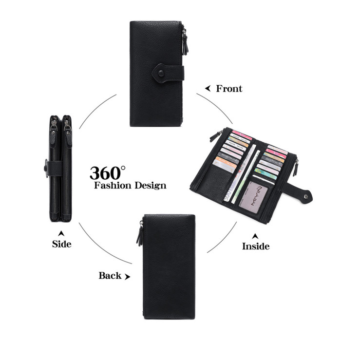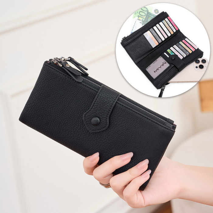 新款女士錢包簡約純色荔枝紋雙拉鍊兩折長錢包多功能可攜式手拿包