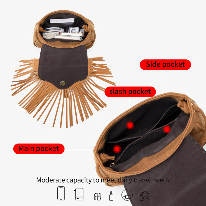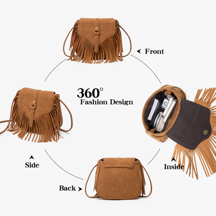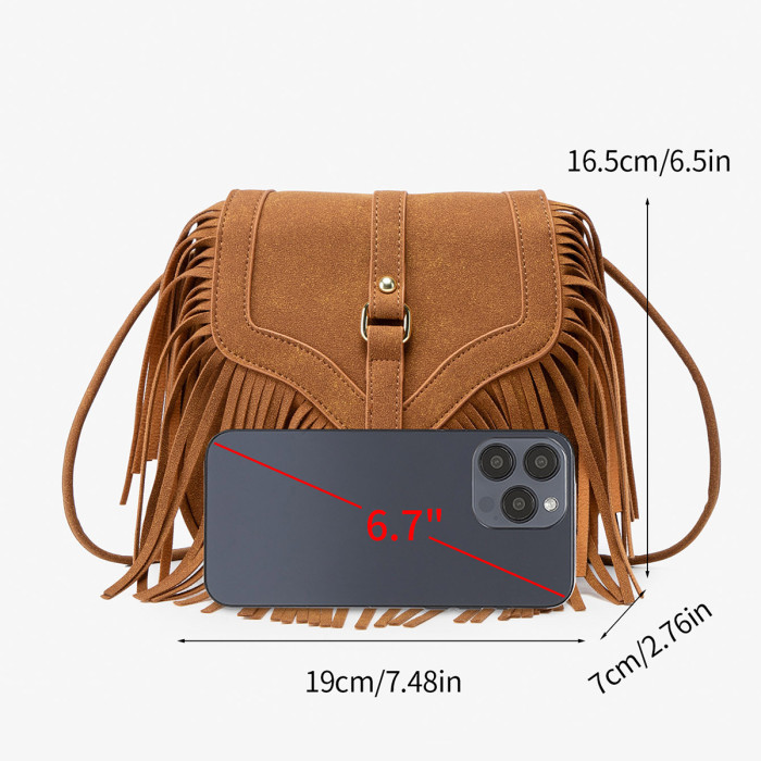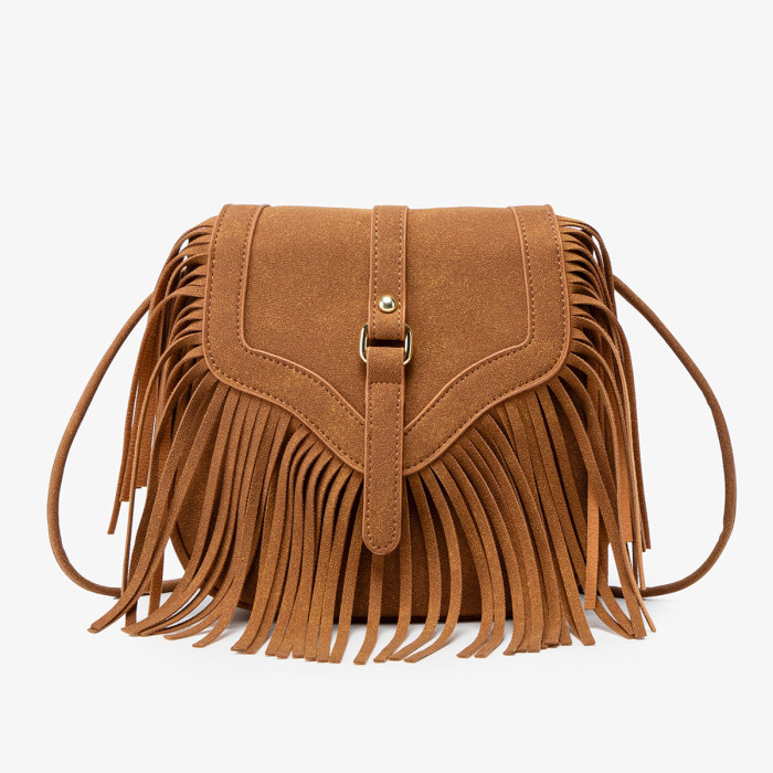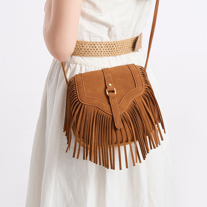 新款波西米亞復古流蘇包小衆設計磨砂翻蓋斜後背包輕便女士單肩包