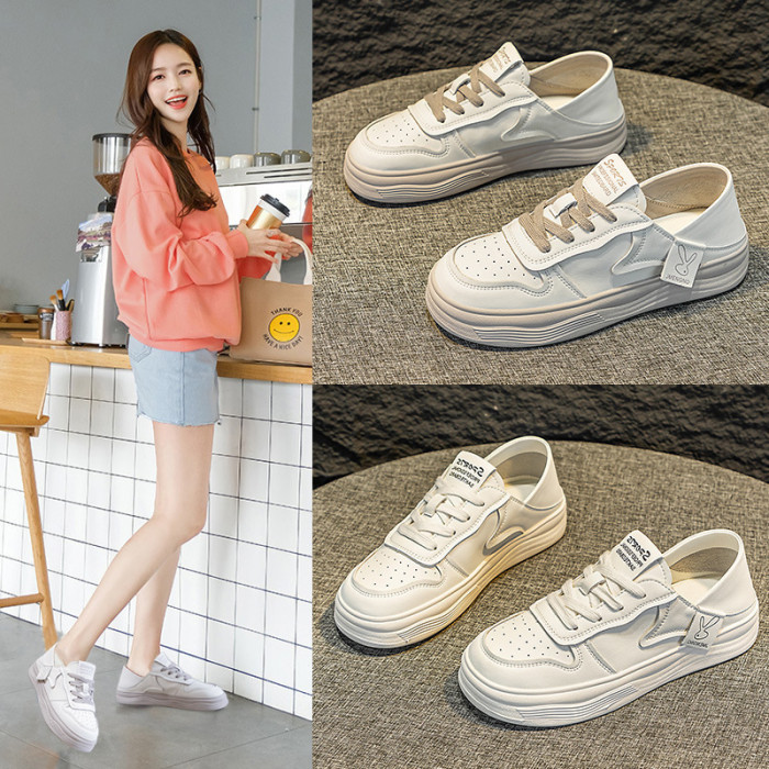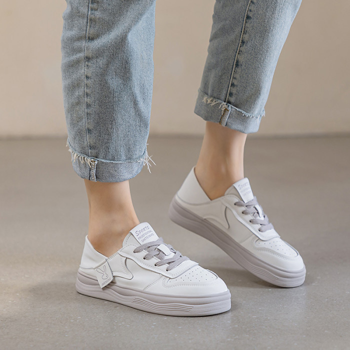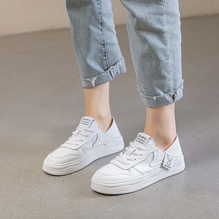平底小白鞋女2025年春夏真皮軟底舒適透氣休閒溶解鞋輕便學生板鞋