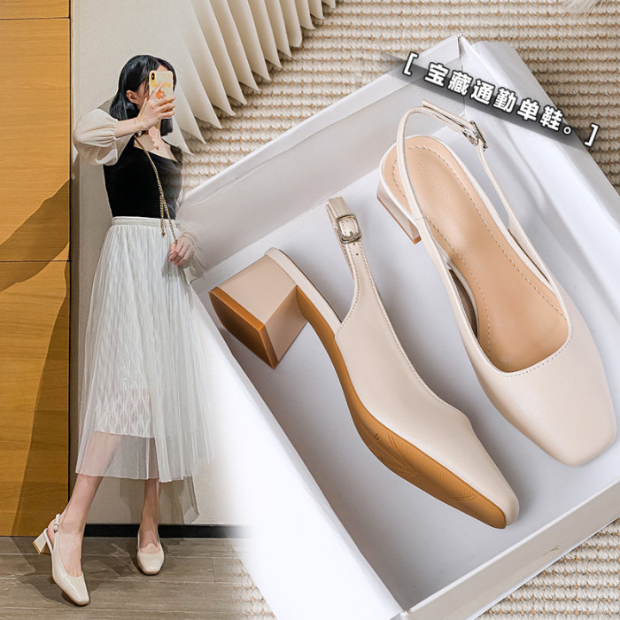 法式包頭涼鞋女夏2025年新款中粗跟真皮高跟鞋淺口大碼女鞋41-43