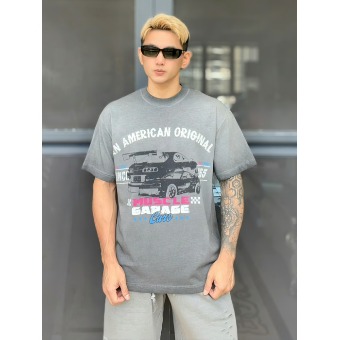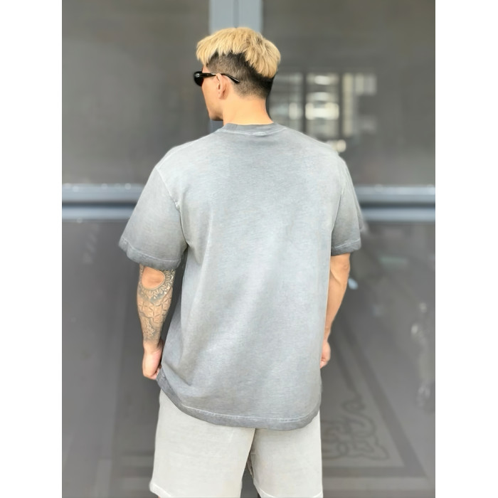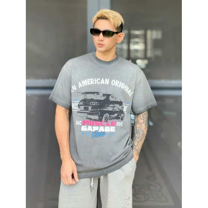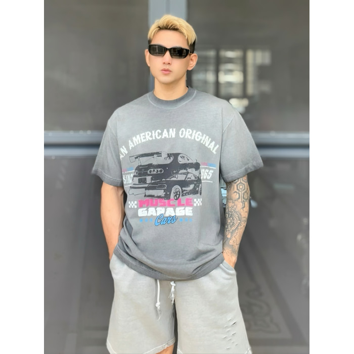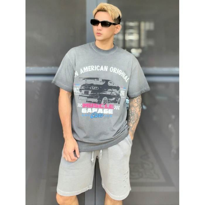 2025夏季新款美式復古紥染撞色條紋短袖T恤寬松圓領上衣潮牌男t恤