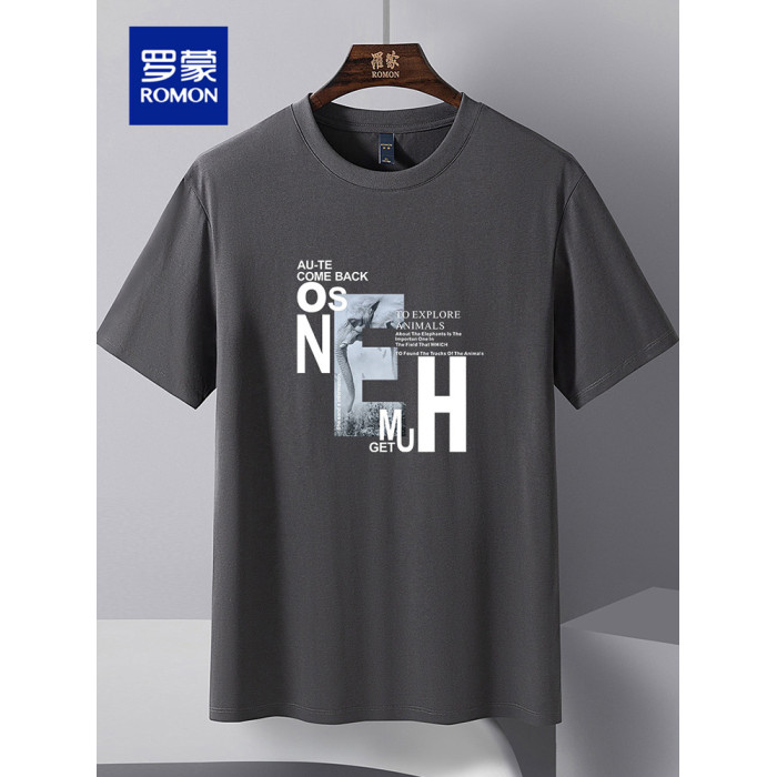 羅矇官方2025夏季新款冰爽涼感男士短袖t恤圓領字母印花半袖打底