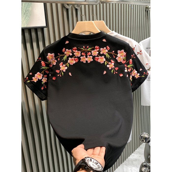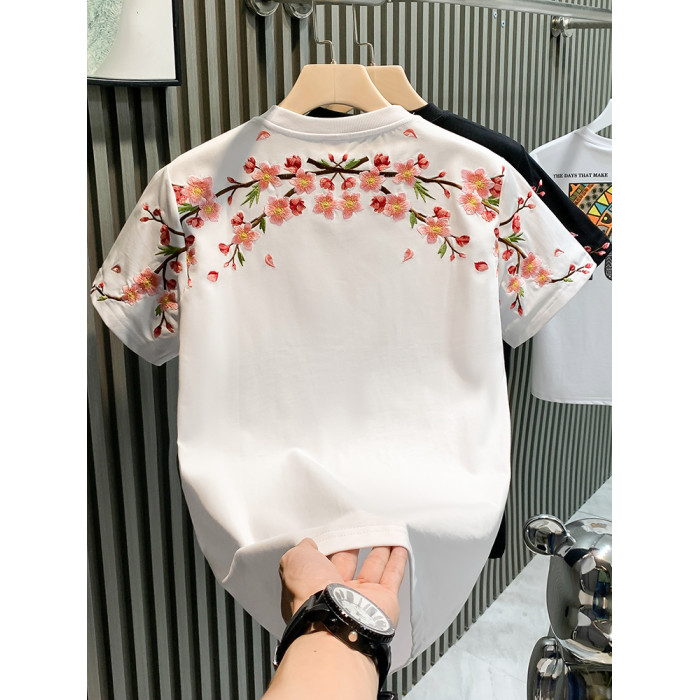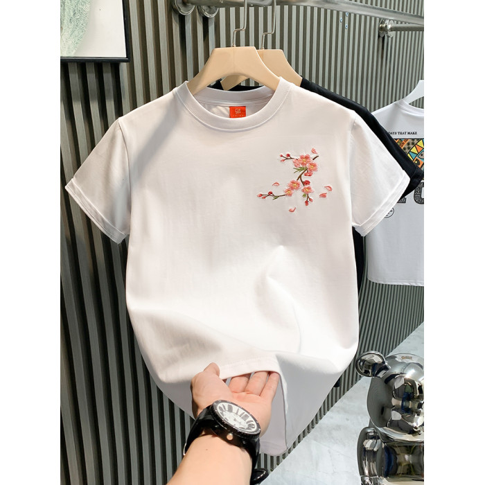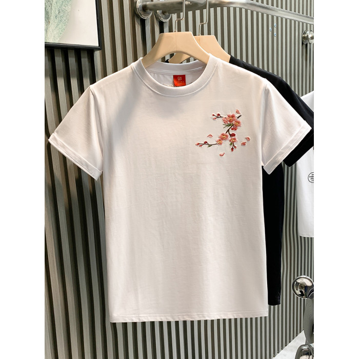 PGAG時尚潮牌輕奢男T恤短袖青年梅花刺綉國潮t網紅爆款半袖體恤男