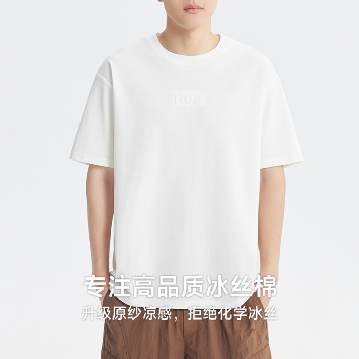 速乾冰絲棉 圓領印花涼感男t恤短袖夏季新款潮透氣半袖體恤衫