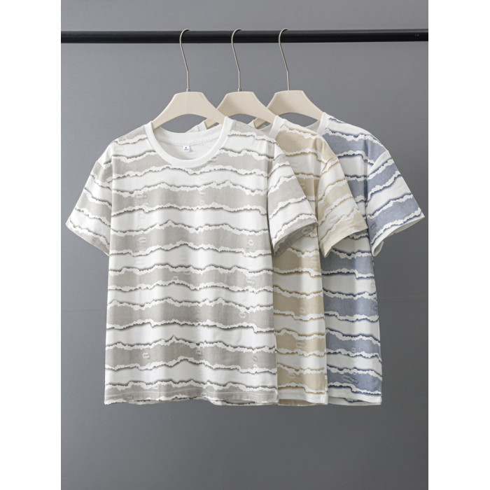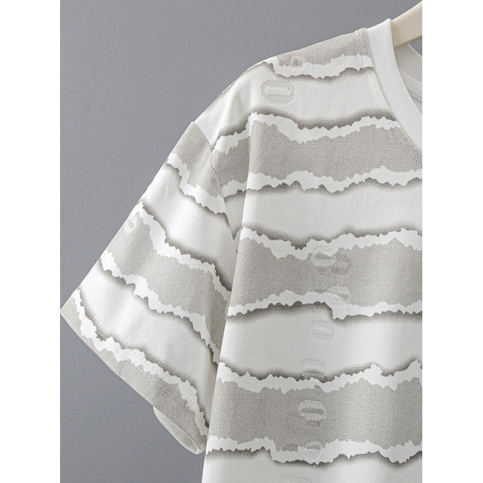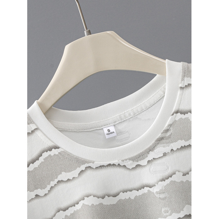 夏季青少年短袖男t恤2025新款速乾透氣潮牌高級感波浪條紋體恤衫T