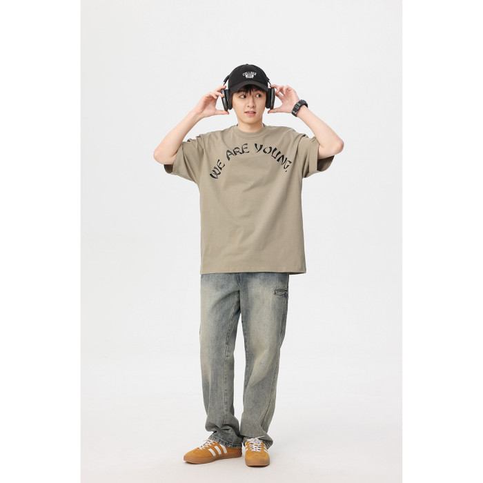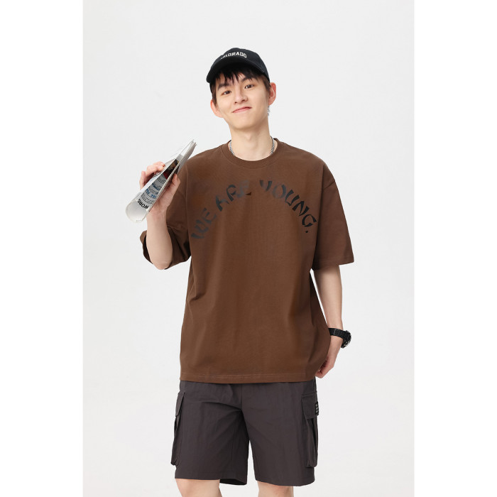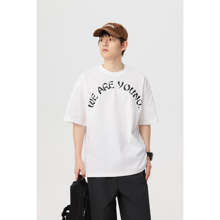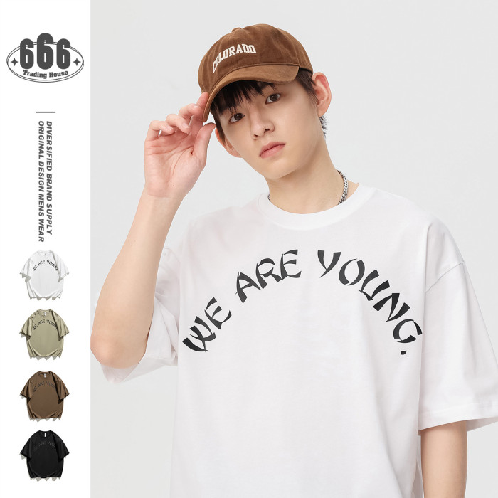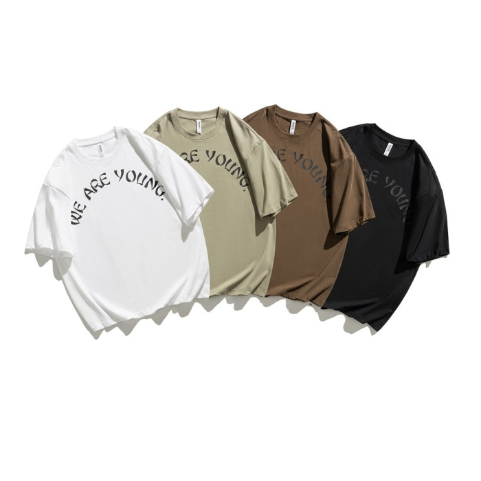 街頭潮牌寬松情侶短袖T恤男女字母純棉運動tee落肩大碼五分體恤衫