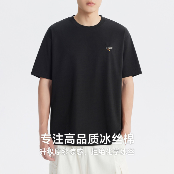 速乾冰絲棉 圓領印花涼感男t恤短袖夏季新款潮透氣半袖體恤衫