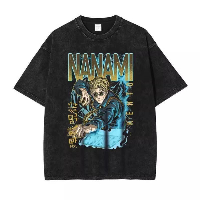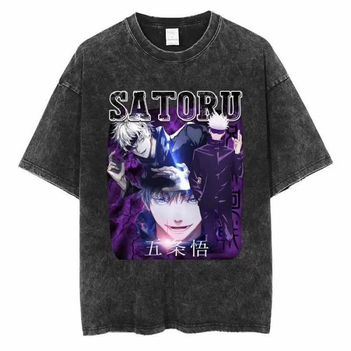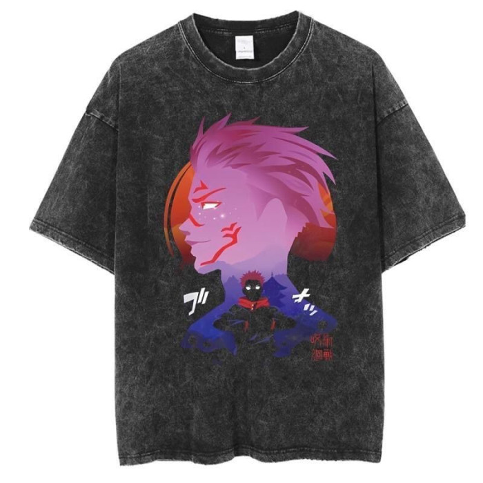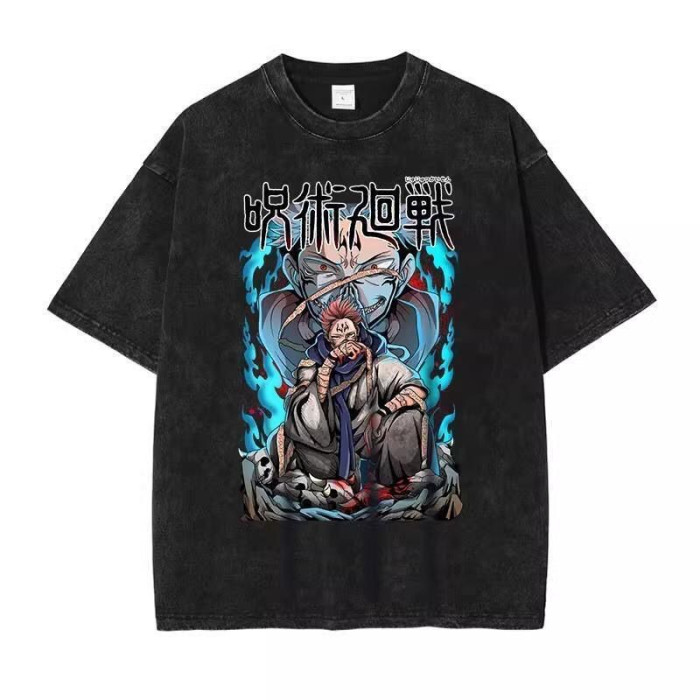 重磅美式嘻哈高街Jujutsu Kaisen咒術迴戰復古水洗做舊短袖男T恤
