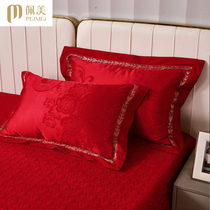 高級歐式輕奢風貢緞提花枕套一對裝結婚慶大紅色枕頭套單人枕芯套