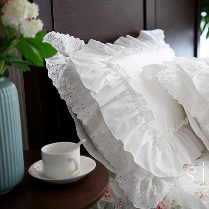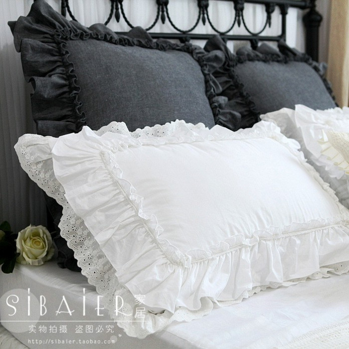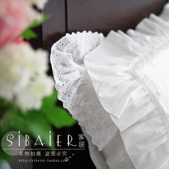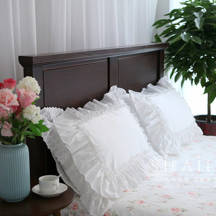 A947韓式法式公主風百搭純色全棉蕾絲純棉加厚單人枕套(一對