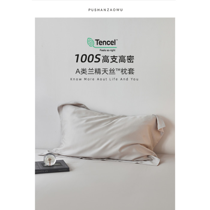 A類100S蘭精天絲枕套一對裝家用絲滑簡約純色涼感冰絲枕頭套48x74