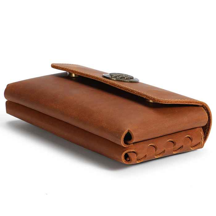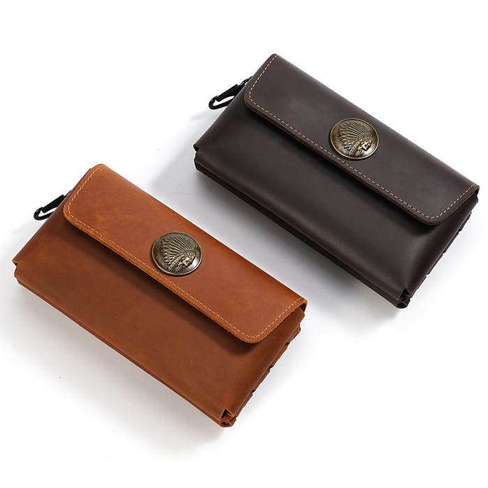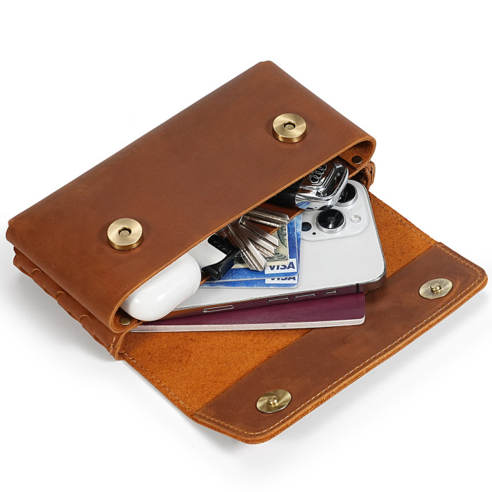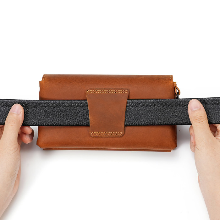 新款瘋馬皮腰包雙手機腰掛包兩部手機包頭層牛皮錢包收納包真皮