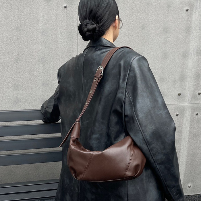 真皮女包復古百搭高級感可頌牛角包 大容量時尚小衆單肩斜背餃子包