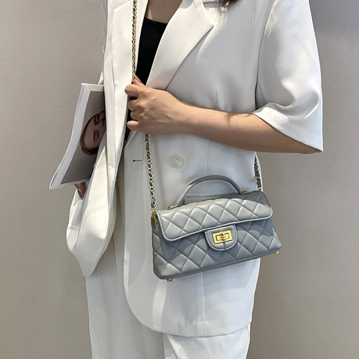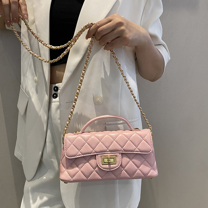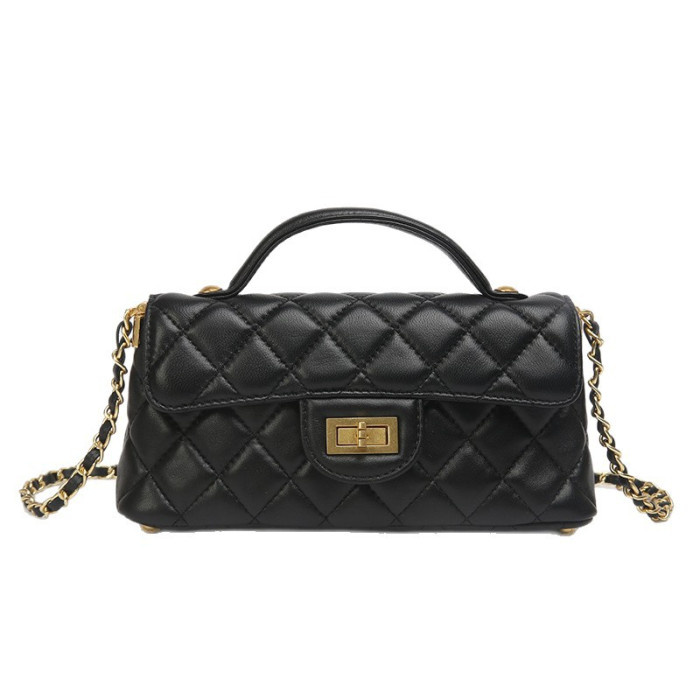 2025新款夏天百搭女士斜背小方包 頭層羊皮單肩菱格小香風鏈條包