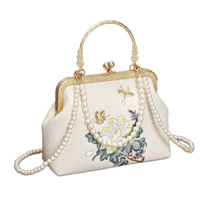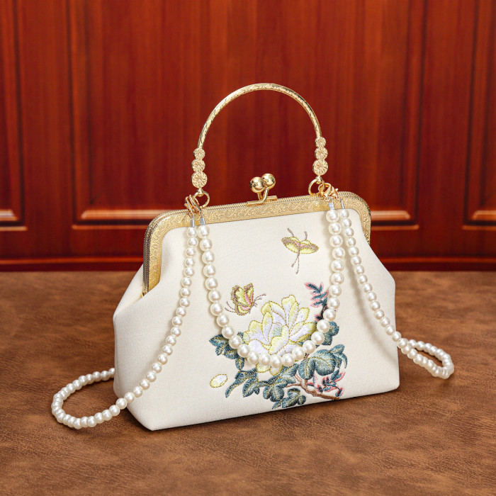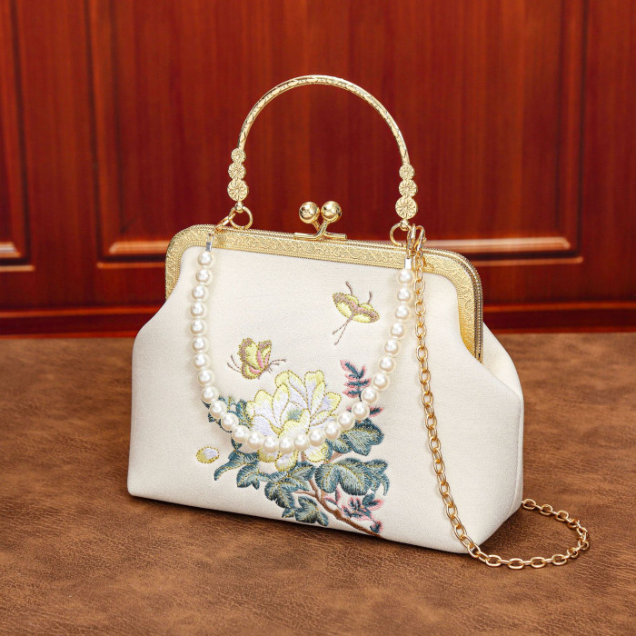 女包高級感輕奢刺綉風旗袍包新中式錦緞斜後背包文藝鏈條女包包