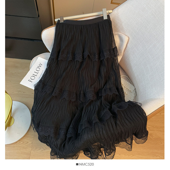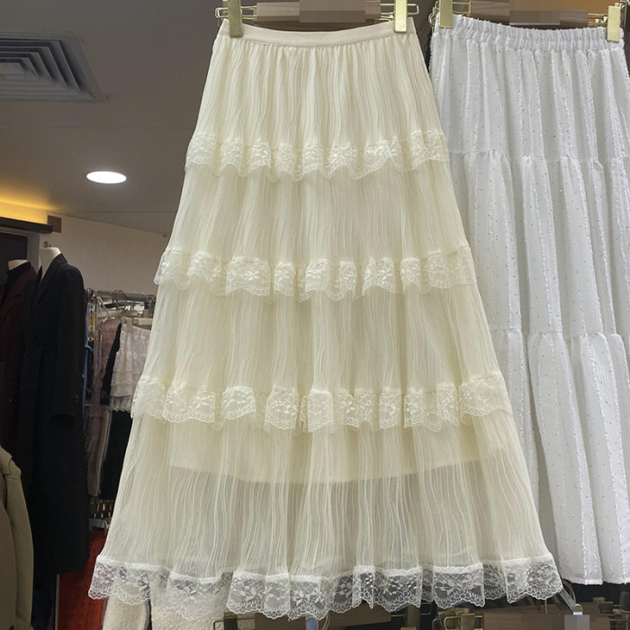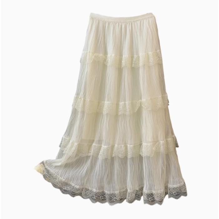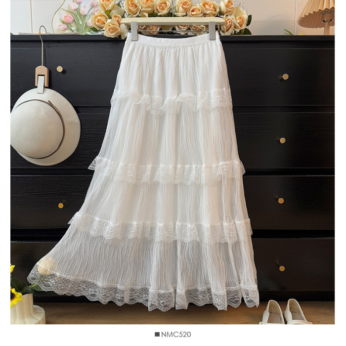 法式溫柔風超仙肌理感蕾絲半身裙女春季2025新款荷葉邊層層蛋糕裙