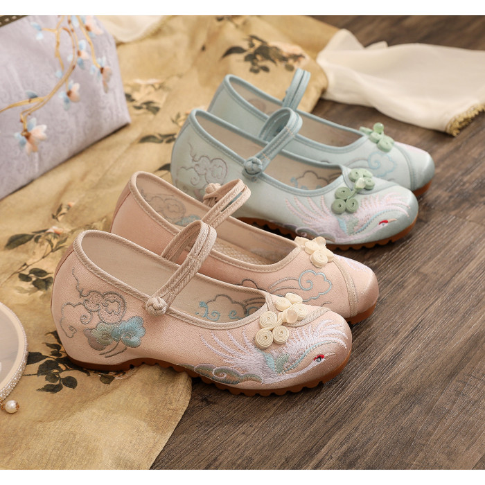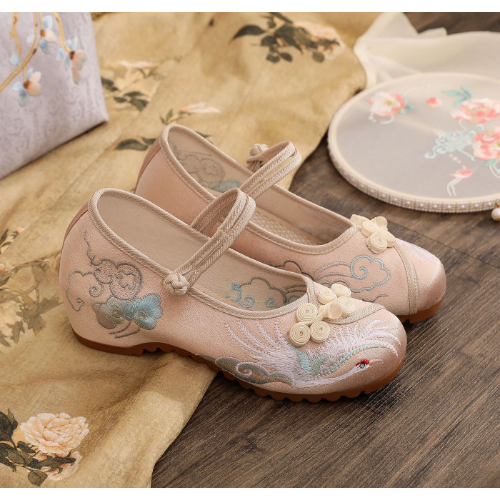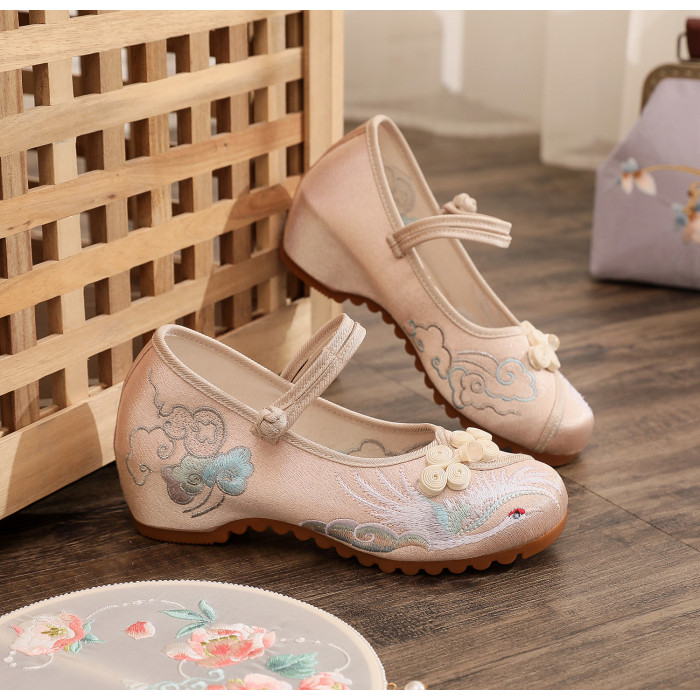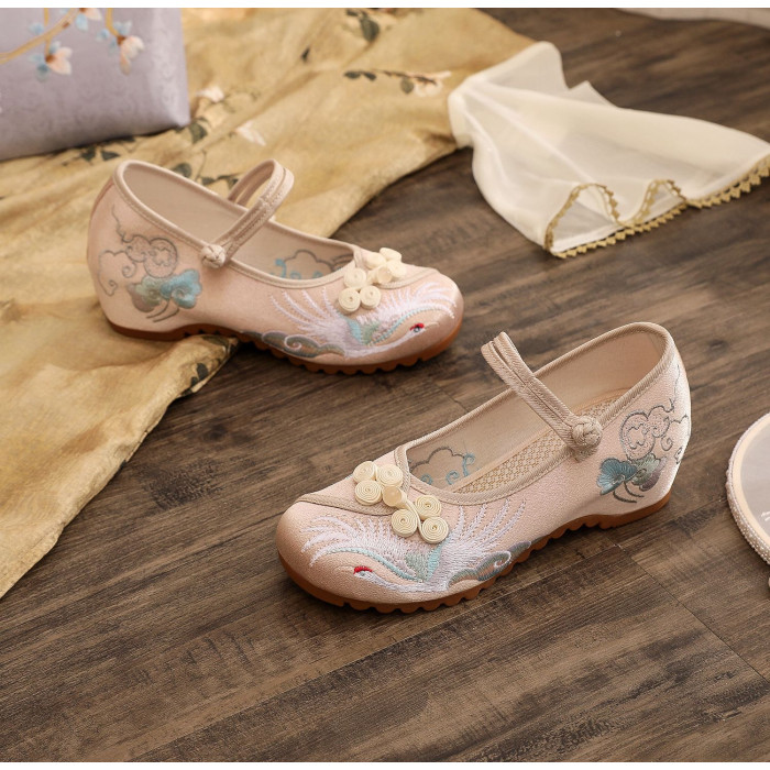 菸輕 2023春款圓頭內增高旗袍女鞋古風綉花鞋禪服茶服鞋舞蹈布鞋