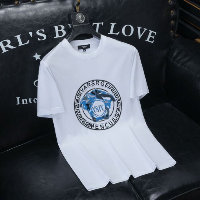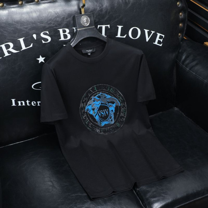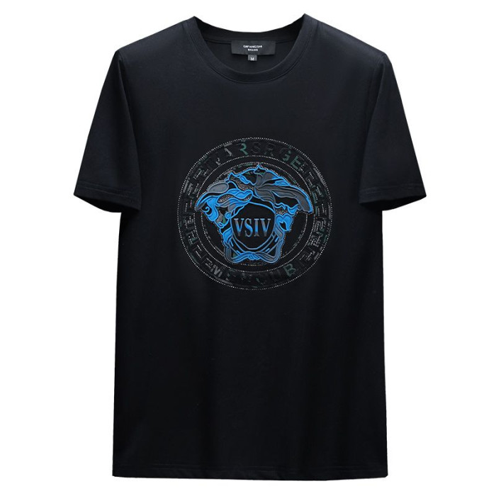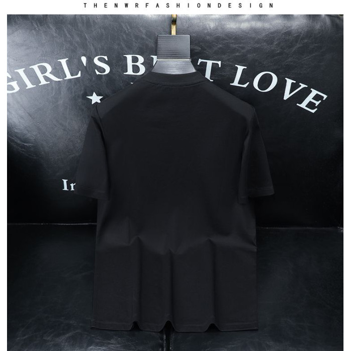 歐洲站高級潮牌燙鑽刺綉短袖男T恤2025夏季新款休閒絲光棉半截袖