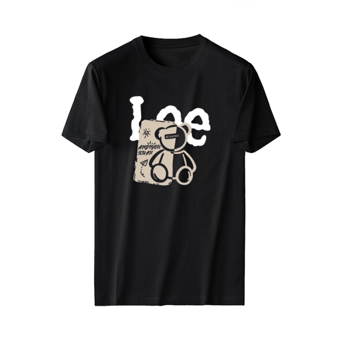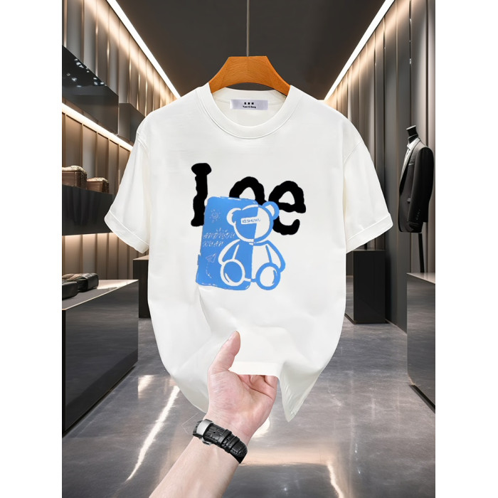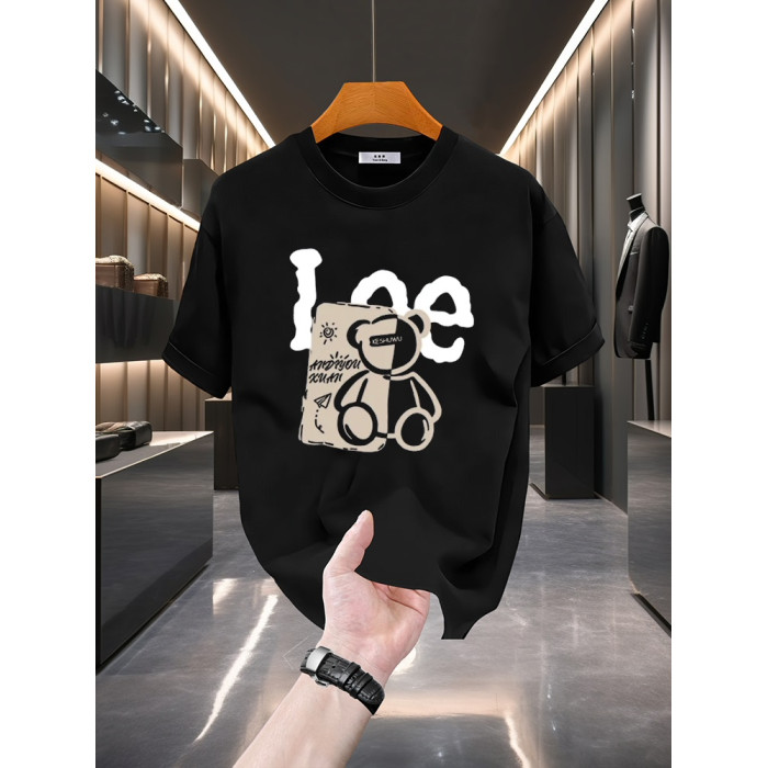美式潮牌卡通小熊紙飛機印花短袖男t恤高級輕奢修身半袖夏季體恤