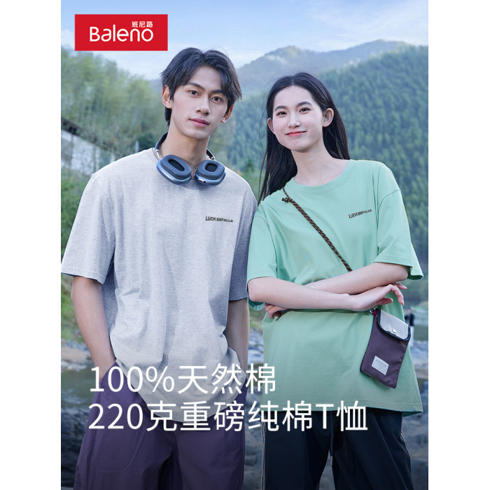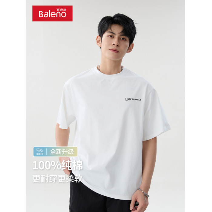 班尼路白色短袖男t恤潮牌夏季純棉內搭半袖寬松上衣男士體恤圓領