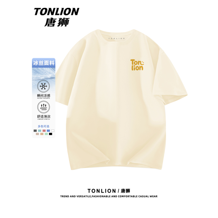 唐獅短袖男t恤2025新款夏季簡約百搭日常美式體恤冰絲透氣汗衫薄