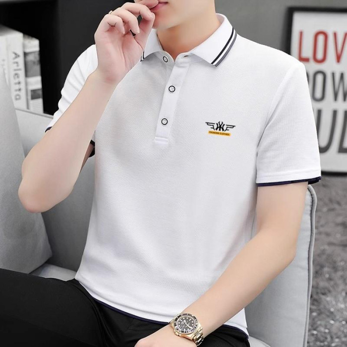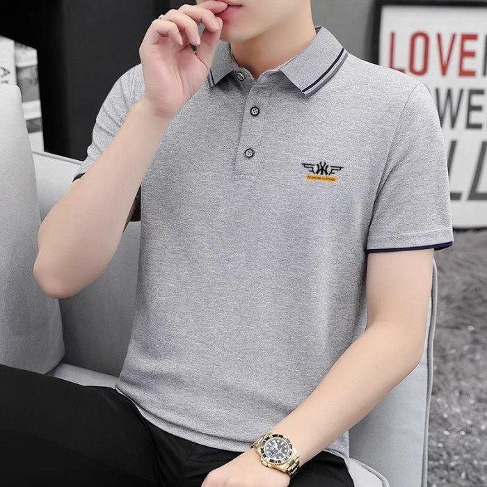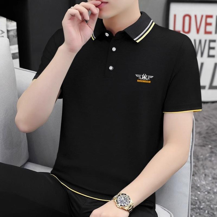 男士珠地棉短袖polo衫夏季高級品牌翻領休閒商務寬松潮流男T恤潮