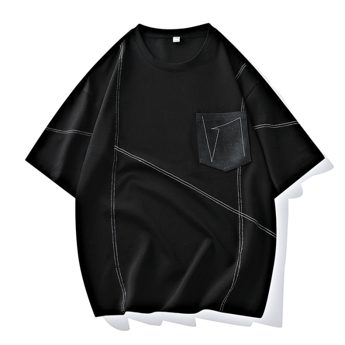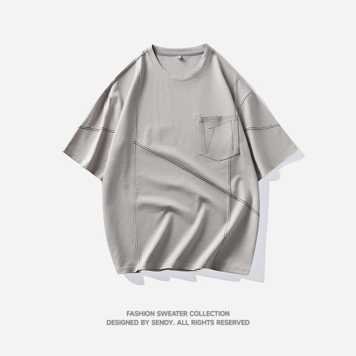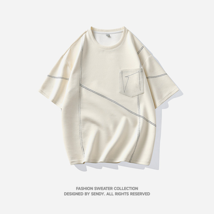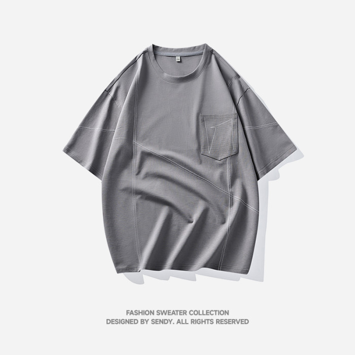 新款夏季男T恤上衣寬松服潮牌潮流五分袖圓領純棉冰絲短袖半袖