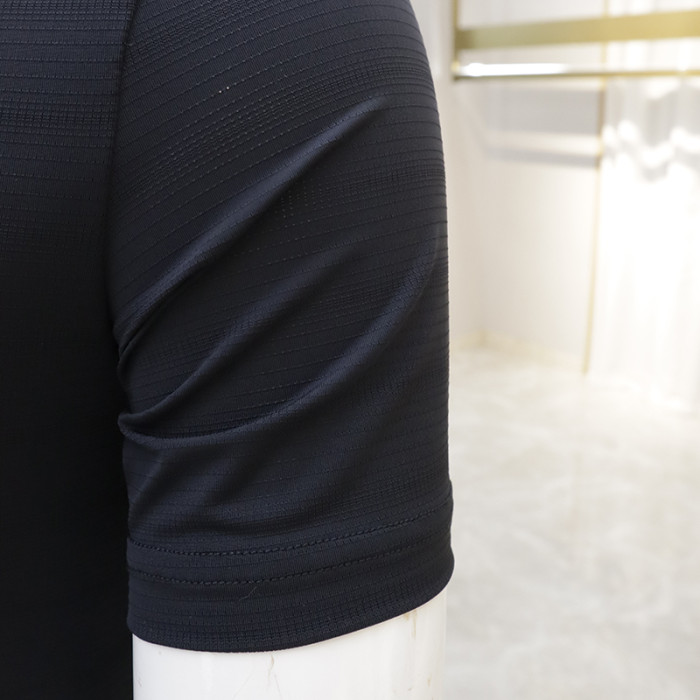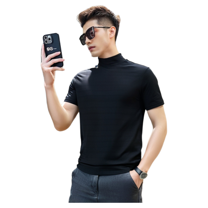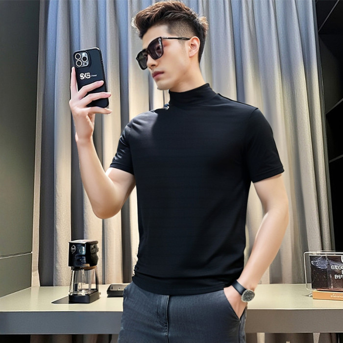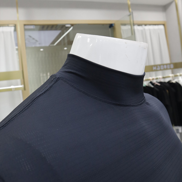 冰絲速乾半高領短袖男t恤2025新款夏季網眼透氣180g薄款中領半袖