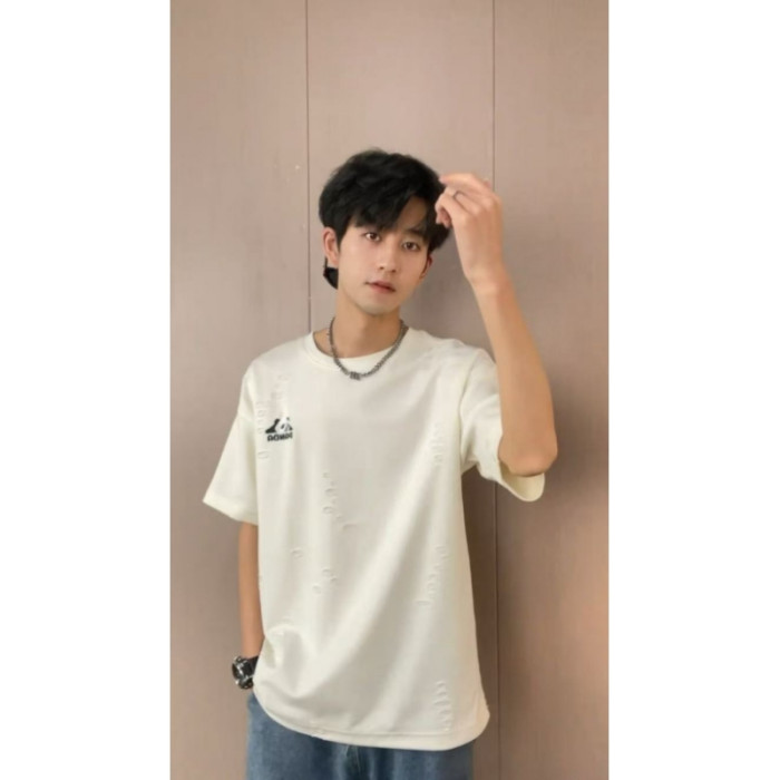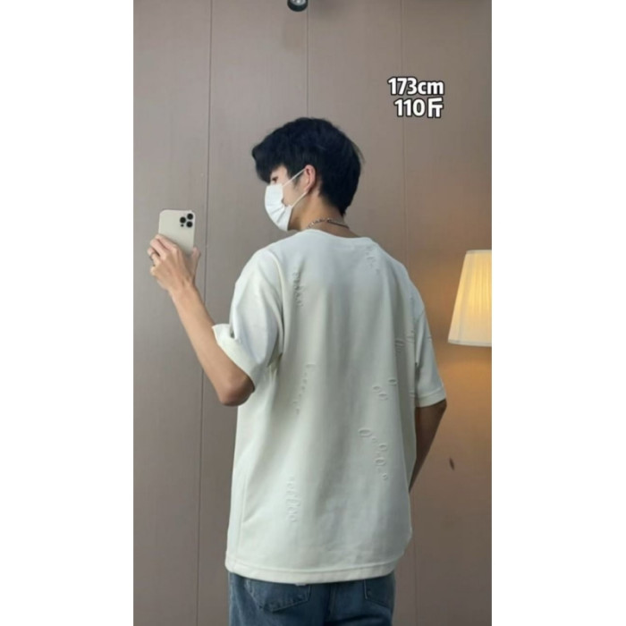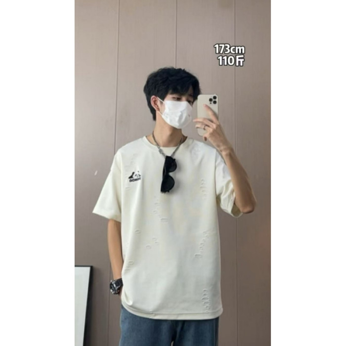 大雄小個子穿搭日記250克重磅開口笑破洞熊貓刺綉冰絲短袖男T恤