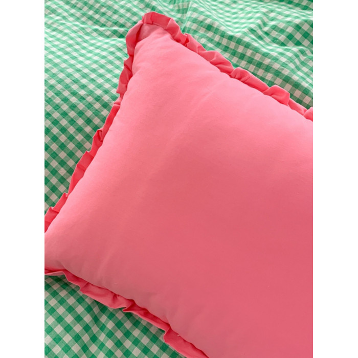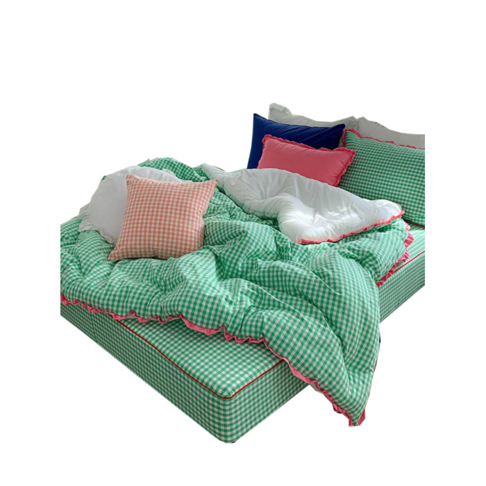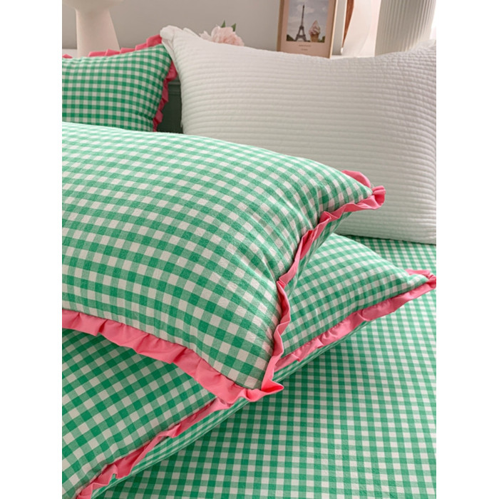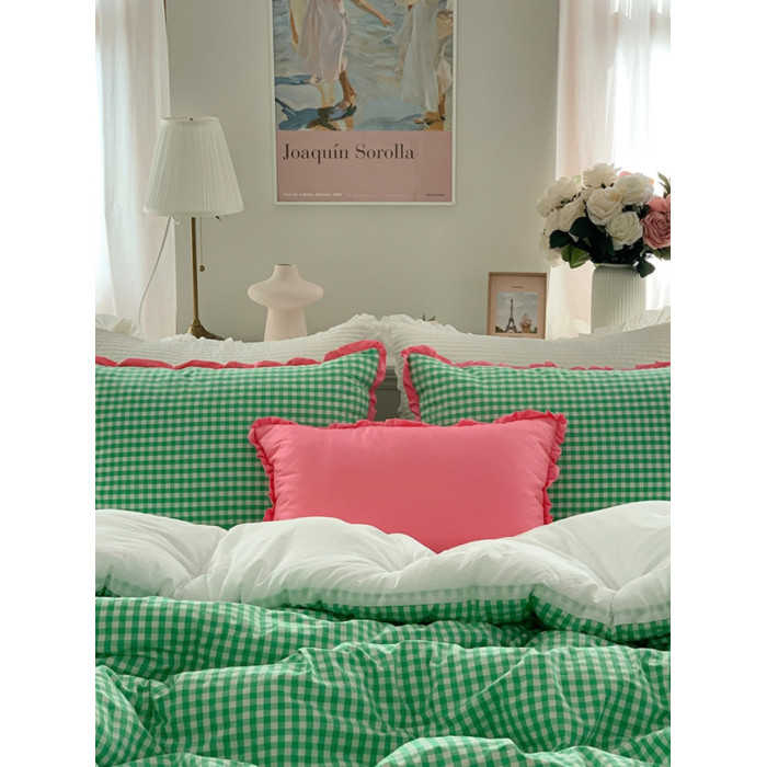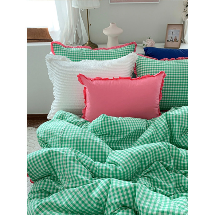 多巴胺格紋夾棉加厚荷葉邊絎縫枕套韓國進口小衆設計師純棉枕頭套