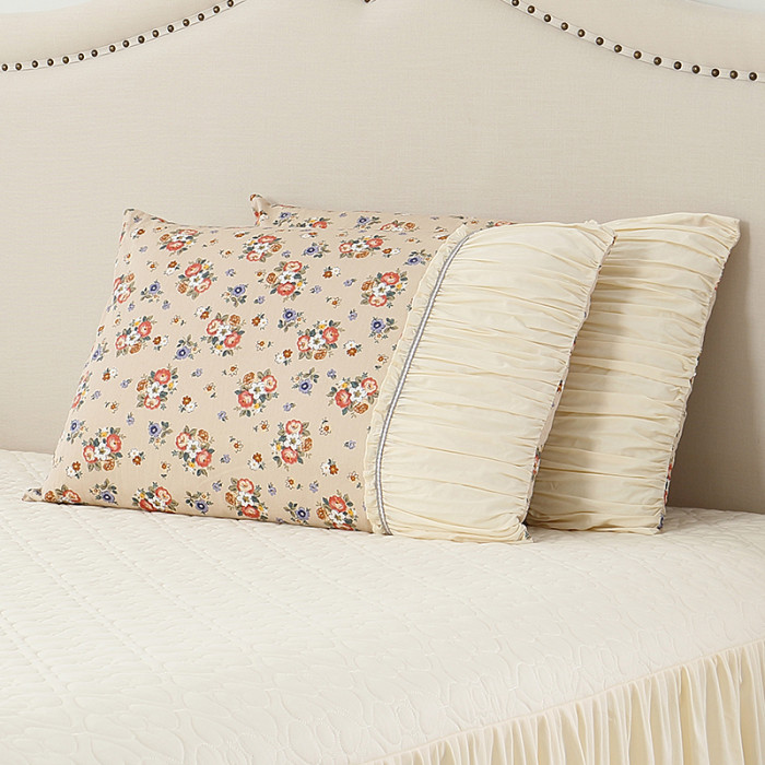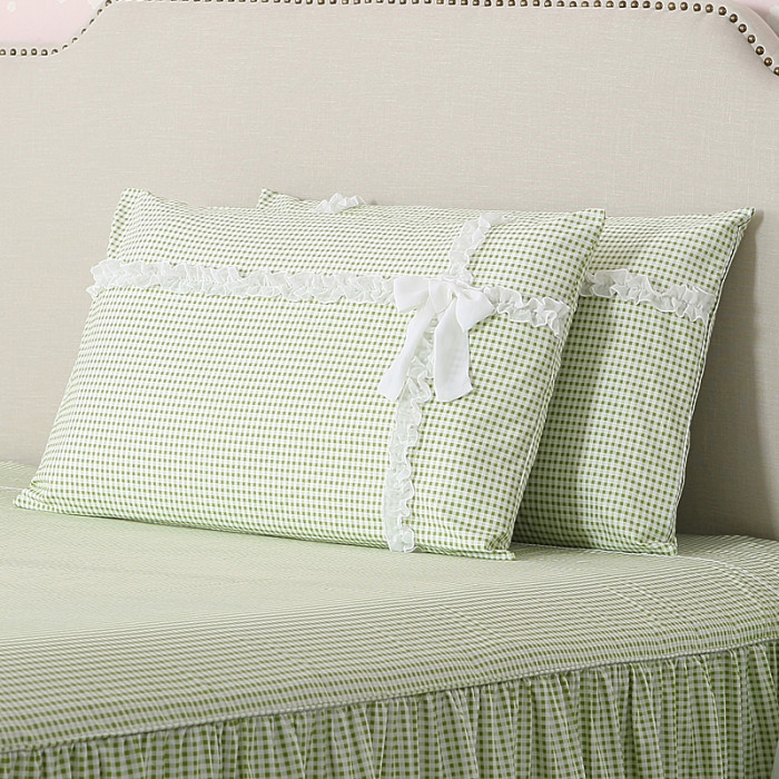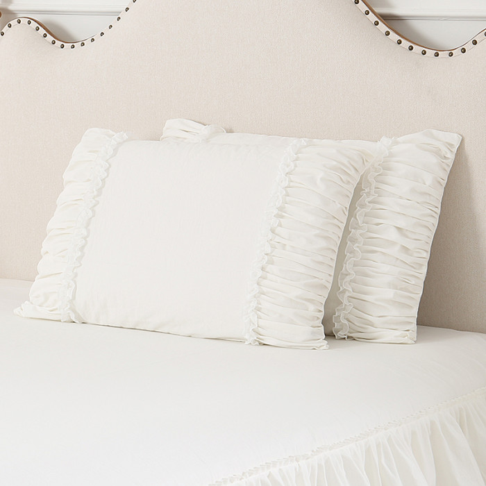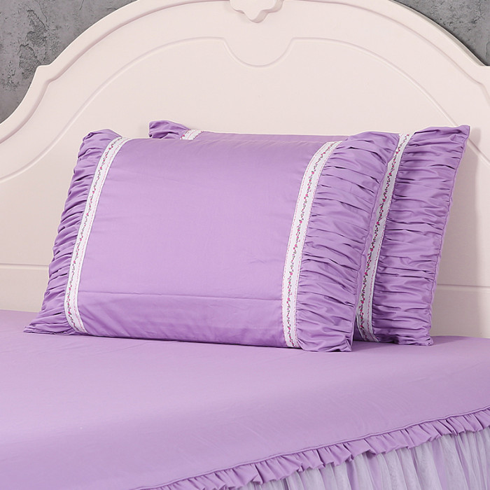 巧致生活純棉花邊蕾絲枕套枕頭套一對 全棉信封款枕頭套子48*74cm