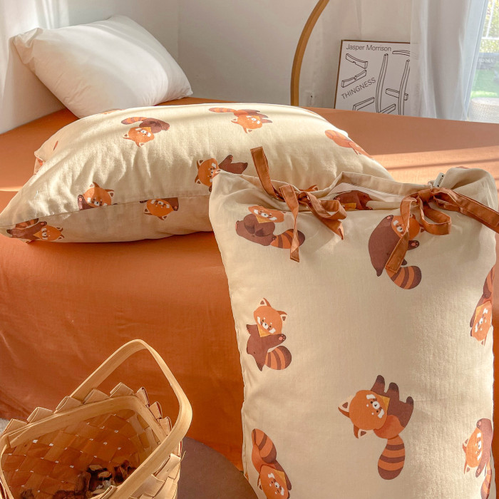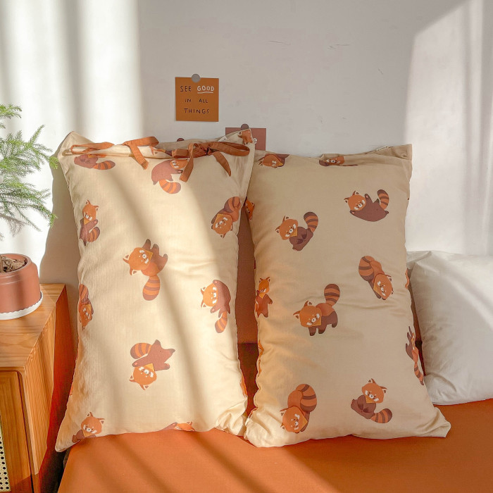 綿綿小熊貓 插畫師原創全棉雙層紗枕套枕芯罩可愛卡通小動物秋冬