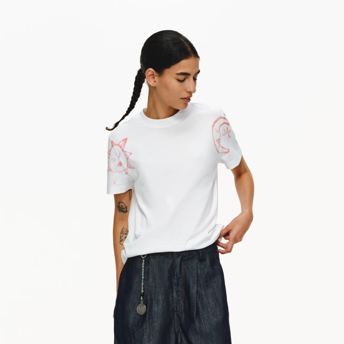 ATRY太陽月亮塗鴉短袖男T恤女夏季寬松純棉美式休閒潮牌情侶上衣