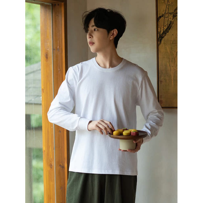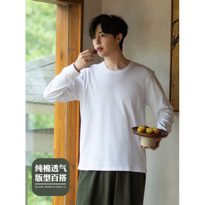 慈緣秋季男士精選純棉圓領打底衫長袖純色潮流百搭舒適有型男T恤