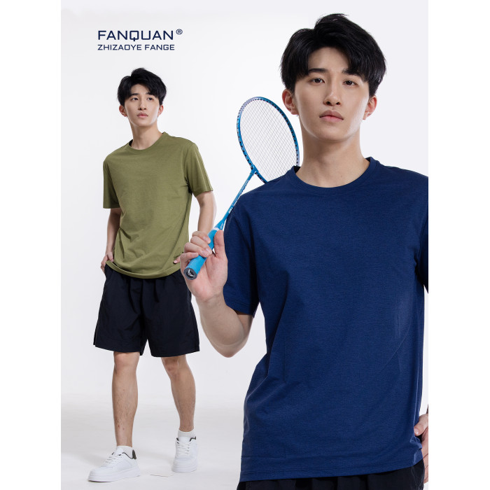 梵圈瞬乾修身短袖男T恤夏季涼感黑科技純色百搭圓領戶外運動健身