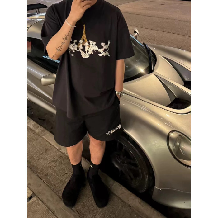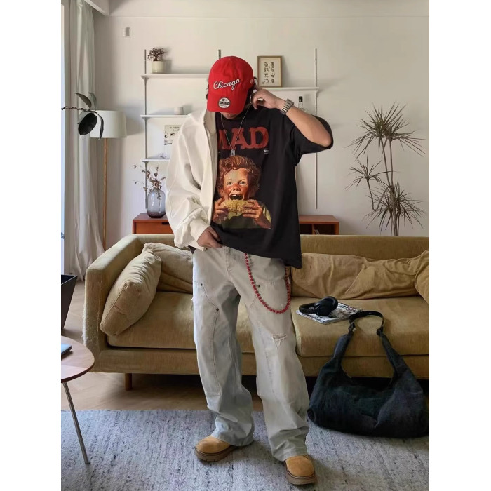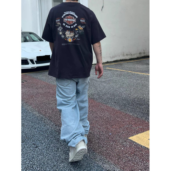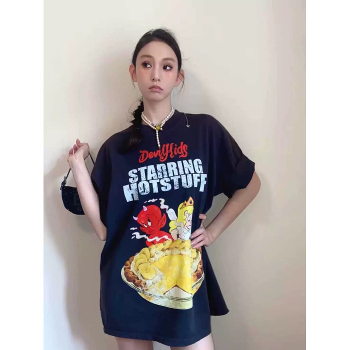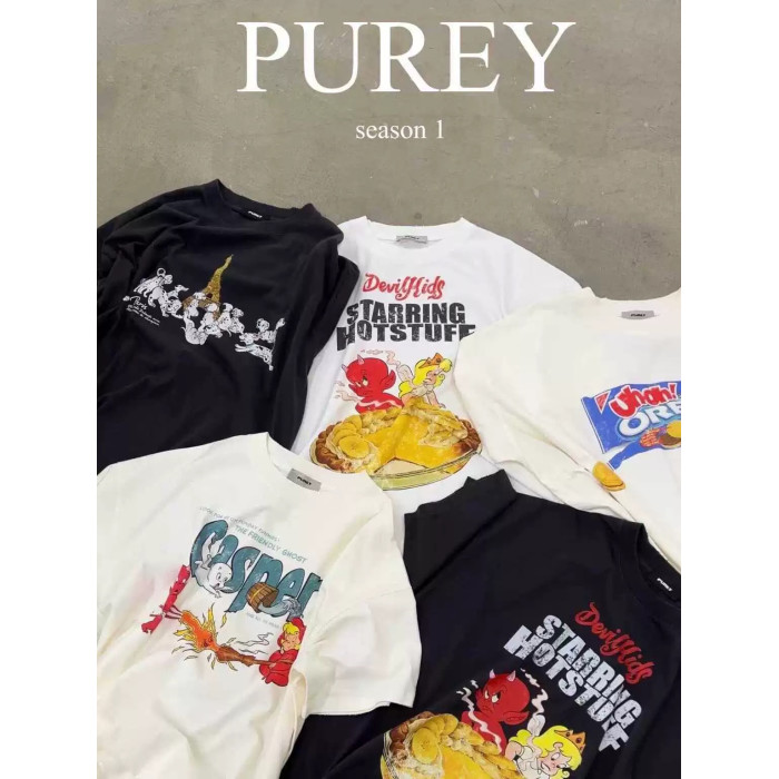 Purey 貪吃惡魔香蕉派卡通復古水洗做舊寬松美式潮流短袖男T恤TEE