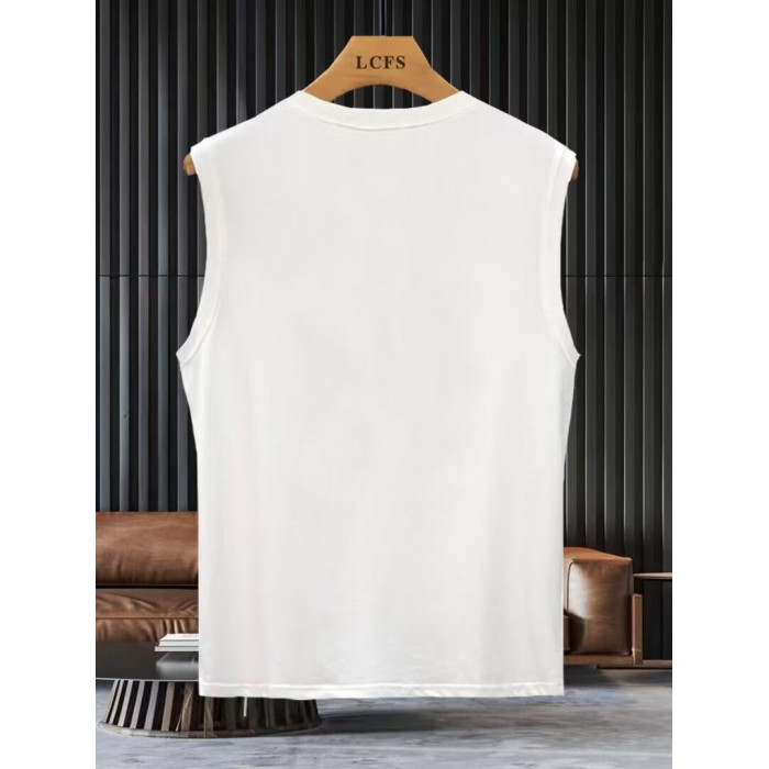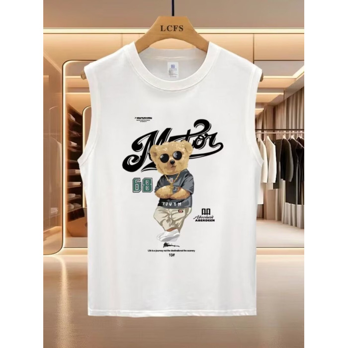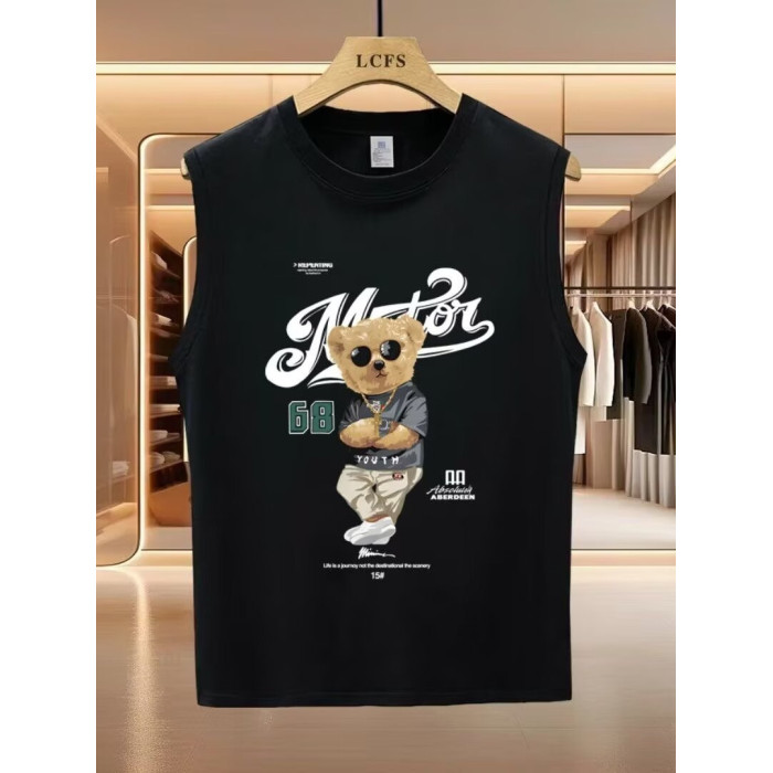 高品質純棉背心男款夏季健身籃球運動上衣坎肩卡通小熊無袖男t恤