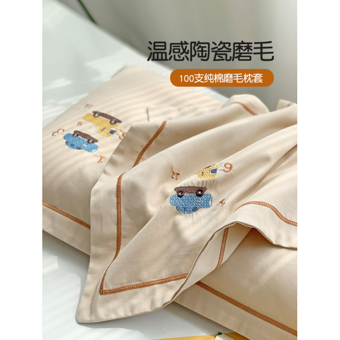 A類100支兒童刺綉磨毛枕套全棉乳膠枕頭套學生枕芯套保暖枕罩枕巾