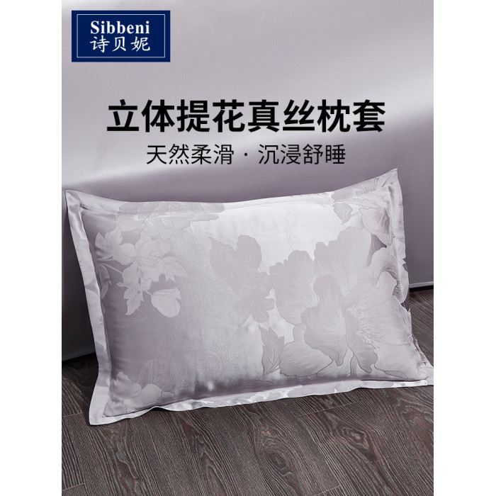 詩貝妮真絲枕套提花單人夏天絲綢枕頭套寬邊雙面100%桑蠶絲枕芯套