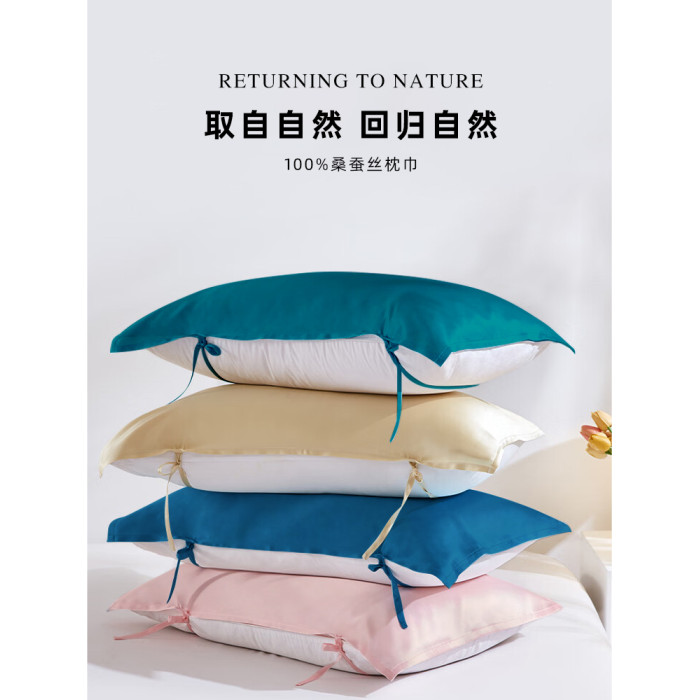 抗菌6A真絲枕巾100%桑蠶絲枕套成人兒童單人枕頭巾重磅絲綢防蟎