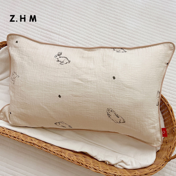 進口原棉兒童枕套雙層紗布單個寶寶純棉小枕巾嬰幼兒30x50枕頭套