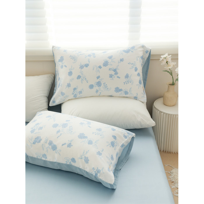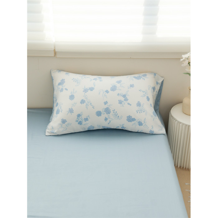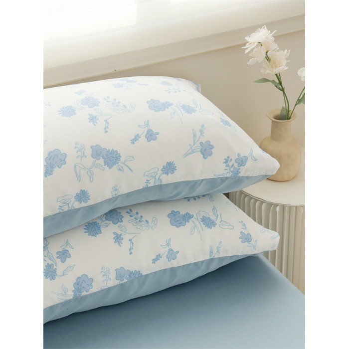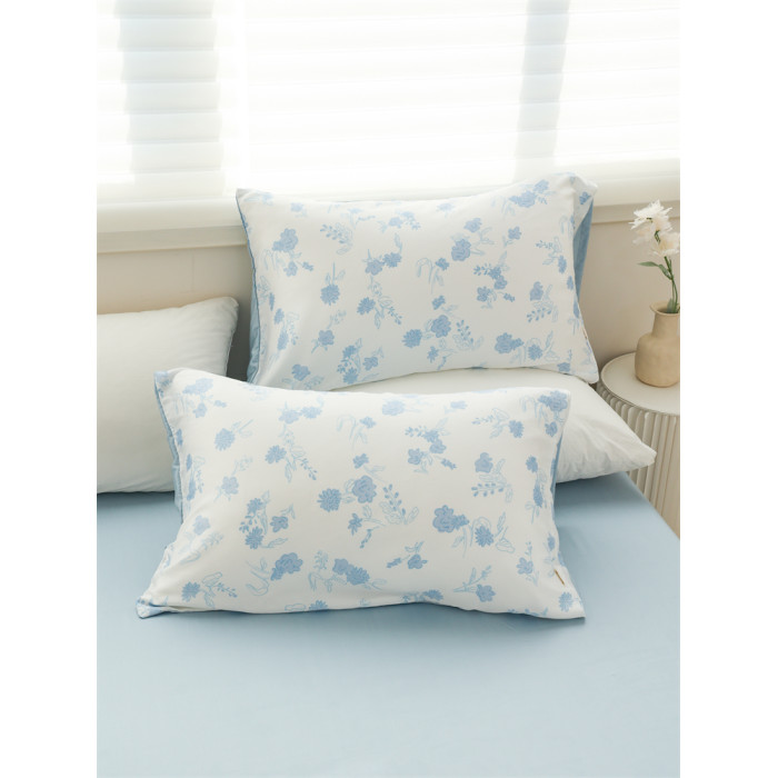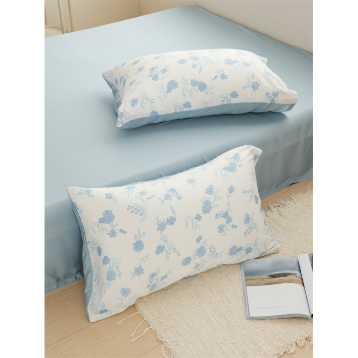 六月雨 原創清新藍色碎花天絲枕套涼感冰絲枕巾枕頭罩