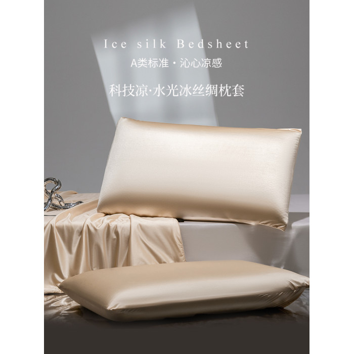 高級純色水光冰絲枕套一對裝夏季雙面真絲滑涼感枕頭芯套48x74cm