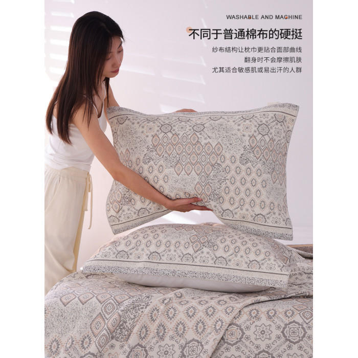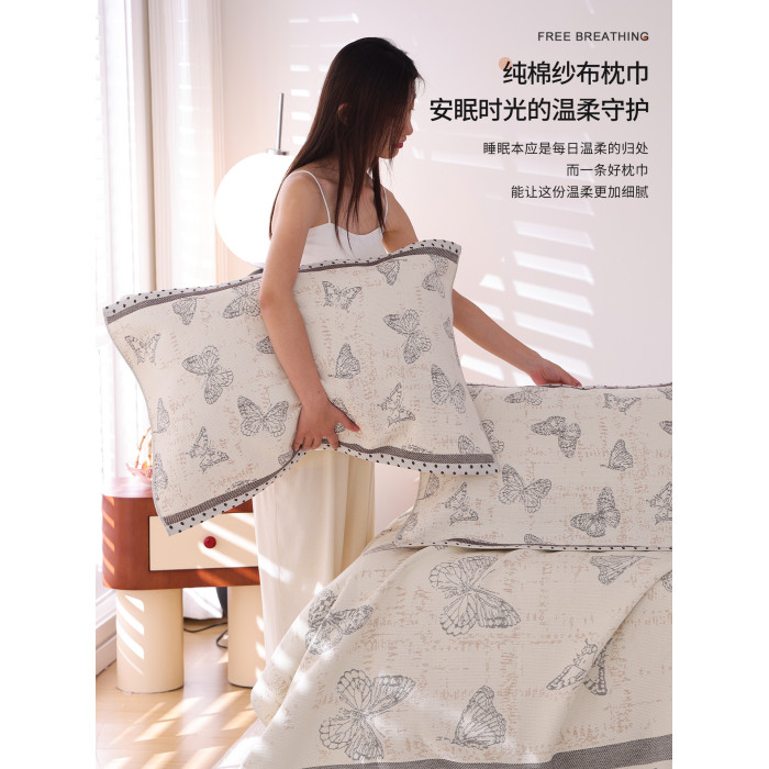 按釦純棉紗布枕套一對裝不掉毛100%全棉防脫落枕頭套枕芯內膽套子