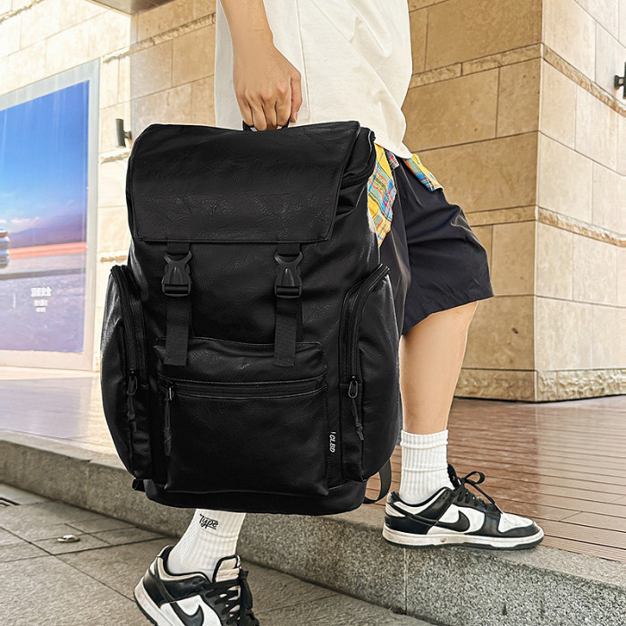潮酷大容量旅行雙肩包新款PU復古簡約電腦後背包高中大學生書包