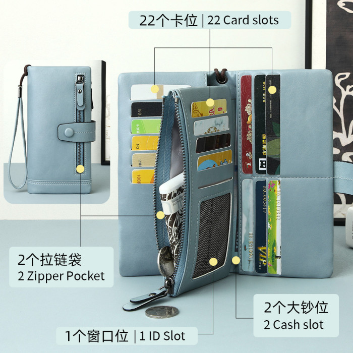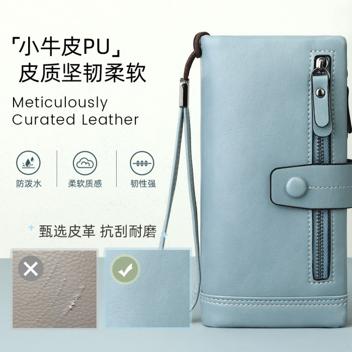 輕奢女士手拿包時尚多功能pu小牛皮質感柔軟長款女士錢包