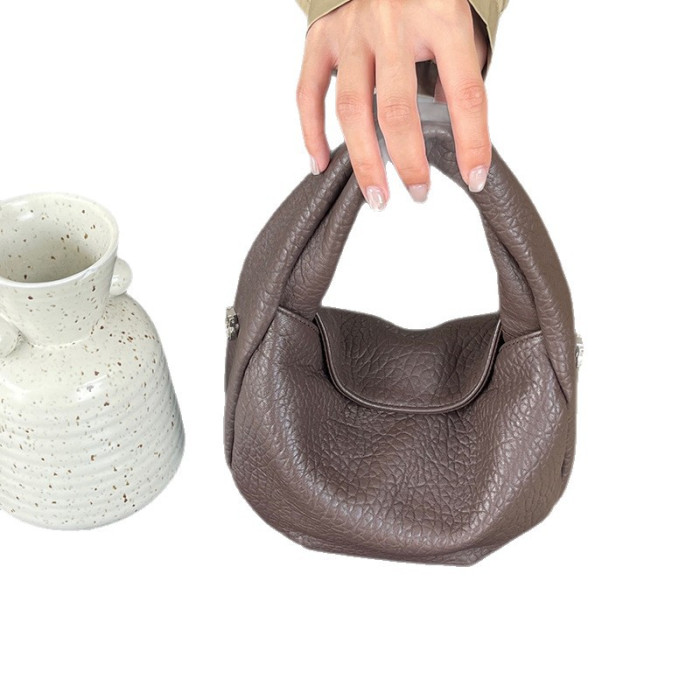 女包2025新款復古極簡風半月包 泡泡紋牛皮手提包單肩斜背餃子包